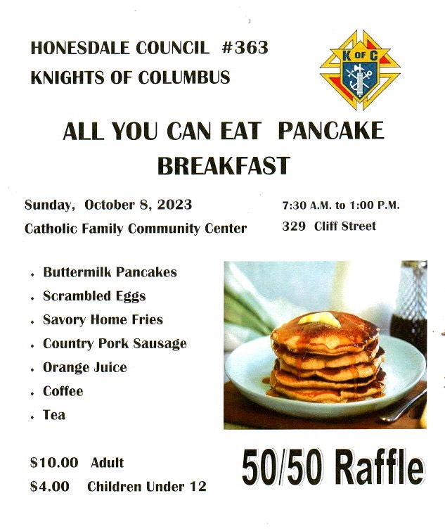 Please support the Knights on October 8! Posted by honesdalecatholic 0 Share this: Click to share on X (Opens in new window) X Click to share on Facebook (Opens in new window) Facebook Click to email a link to a friend (Opens in new window) Email Click to print (Opens in new window) Print Like Loading... Related